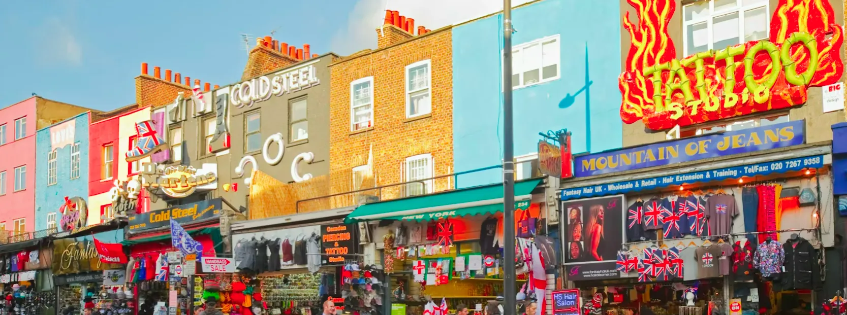 Камден — це цілий комплекс майданчиків уздовж каналу Ріджентс: від Camden Lock Market до Stables Market, розташованого в колишніх стайнях XIX століття. Перший ринок з’явився тут у 1974 році і швидко став центром альтернативної культури.